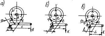 Рис. 3. Ленточные тормоза: а) – суммирующий; б) – простой; в) – дифференциальный.