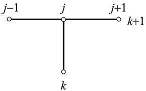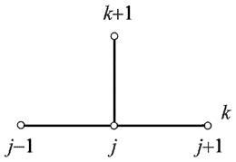 Рисунок 3 - Шаблон неявной конечно-разностной схемы для уравнения теплопроводности