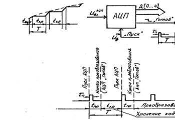 Временные диаграммы, иллюстрирующие работу АЦП, приведены на рис.1. Одной из особенностей работы ряда быстродействующих АЦП (например, поразрядного уравновешивания) является возможность появления сбоев при изменении уровня входного напряжения на момент преобразования.