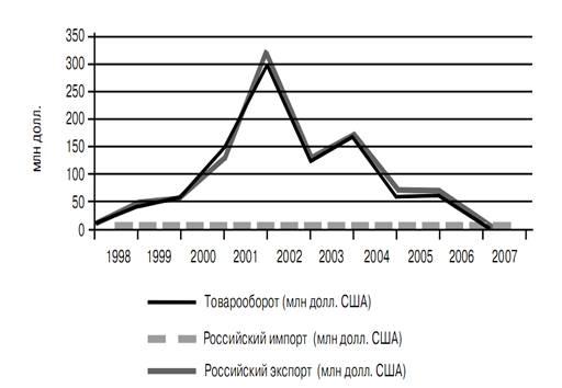 Рис. 1. Динамика российско-иракской торговли (1998–2007 гг.)