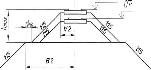 Причому необхідно враховувати, що товщина баласту усюди різна. Відмітки РГР визначаються за формулою: