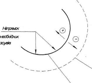 Далі наносять на кутову діаграму лінії проектної кривої. Для цього необхідно найперше вирахувати координати точок середини кривої.