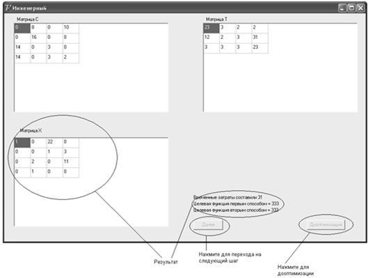 " производится переход на следующую итерацию решения. При достижении оптимального решения, эта кнопка станет недоступной, но можно будет нажать кнопку "Дооптимизация