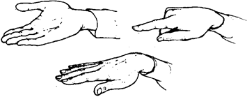 Ваш колега просить Вас підняти коробку й переставити її в інше місце. Своє прохання він супроводжує наступними жестами долоні: а) положення долоні уверх, б) положення вказуючого перста. (Див. малюнок) Допустимо, що при цьому він використовував одні й ті самі слова, промовляючи їх одним тоном голосу і з одним й тим самим виразом обличчя.
