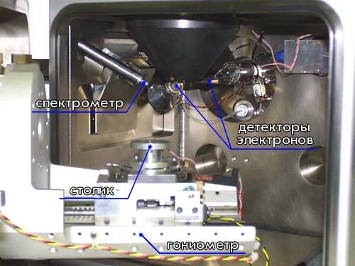 Па) в рабочем объеме электронной пушки и электронно-оптической системы. Составными частями микроскопа являются механические узлы (шлюзы, гониометрический стол и т.д.), обеспечивающие установку и перемещение образца.