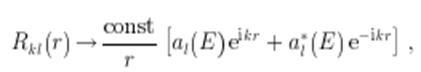 При , радиальная волновая функция на больших расстояниях равна