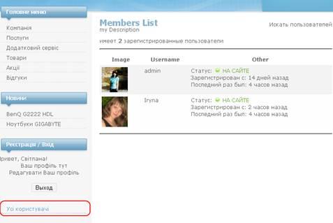 – для відображення зареєстрованих користувачів на сайті;
