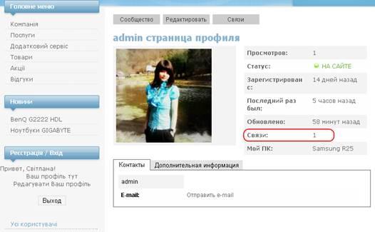 Якщо ми повернемось в наш профіль то побачимо що в нас є Зв’язок (1) (Рис.29):