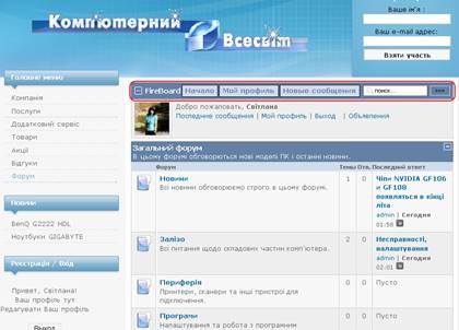 Головна сторінка сайту для зареєстрованого користувача (Рис.41) :