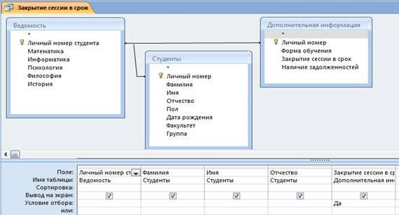 Рисунок 17 – Структура отчета «Закрытие сессии в срок» в режиме «Конструктор»