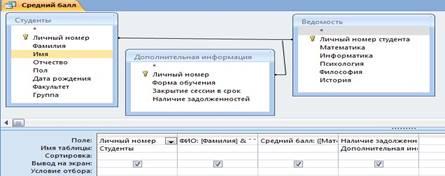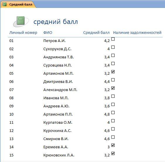 СУБД Access предоставляет необходимые средства для работы с базами данных, позволяя ему легко и просто создавать базы данных, вводить в них информацию, обрабатывать запросы и формировать отчеты. При помощи этой базы данных мы можем узнать успеваемость студента, какая у него форма обучения, закрыл ли он сессию в срок, возраст студентов, средний балл.