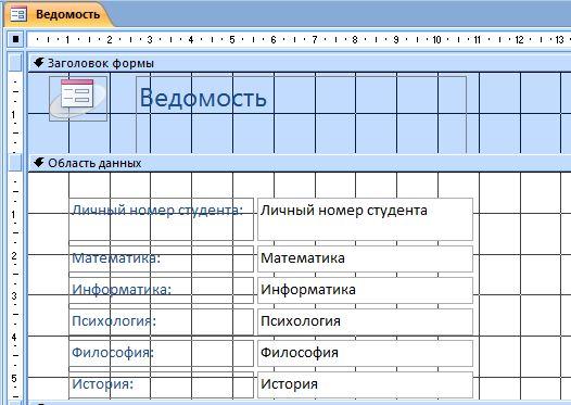 Рисунок 11 – Структура формы «Ведомость» в режиме «Конструктор»