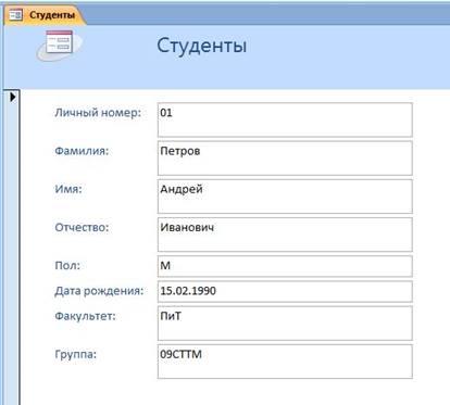Форма для ввода данных «ЛичныеДанныеСтудентов» создается при помощи мастера форм.