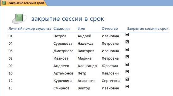 Рисунок 18 – Результат отчета «Закрытие сессии в срок»