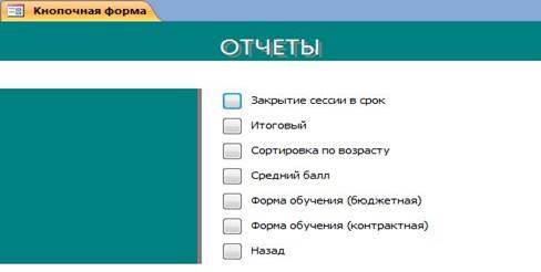 - созданы элементы для кнопочных форм отчетов и форм ввода или изменения данных;