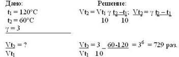 Ответ. Скорость химической реакции при понижении температуры от 120º до 60º С уменьшится в 729 раз.