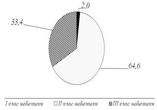 Рис. 2.3. Утворення небезпечних відходів за класами небезпеки у 2009 році, відсотків.