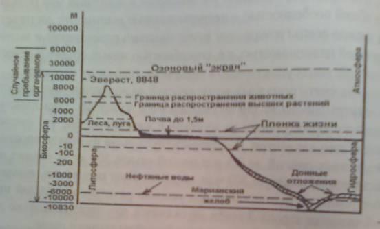 Живое вещество в биосфере распределено весьма неоднородно: его основная масса сосредоточена в относительно узком пространстве, называемом пленкой жизни (рис. 1).