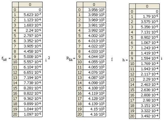 Решая эти уравнение в математическом пакете MathCAD получим необходимые нам величины: