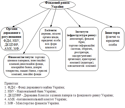 Для того, щоб фондовий ринок виконував покладені на нього функції, необхідно створити відповідну структуру учасників і регулюючих органів.