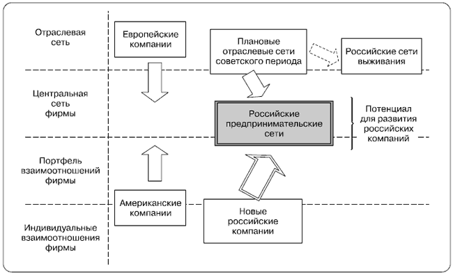 Первая особенность, характерная для межфирменных взаимоотношений и сетей российских фирм, состоит в том, что предпосылки для их формирования и развития существенным образом отличались от ситуации, имевшей место в США и во многих европейских странах. Подавляющее большинство взаимодействий между предприятиями в условиях плановой экономической системы советского периода было детерминировано государственными административными механизмами управления. В результате основное развитие получили сети, которые мы предлагаем назвать «плановые отраслевые сети» и управление которыми осуществлялось соответствующими отраслевыми министерствами и комитетами. В основе формирования и развития взаимоотношений и межфирменных сетей иностранных компаний, напротив, лежали рыночные принципы взаимодействия фирм.