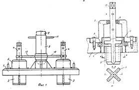 Він складається зі штампа 1 (Рис.3.) з отворами, навантажувальної штанги 2 симетричні відносно його вертикальної вісі крильчатки 3 зі штоками 4, розміщені на штампі 1, кожусі 5 з отворами 6 у верхньому торці і розміщені всередині штампу 1 втулки 7, опираючись на опорний підшипник 8. Навантажувальна штанга 2 оснащена зовнішньою трубою 9 з кронштейнами 10, з’єднаними з штоками 4 крильчаток 3, і ручками 11.