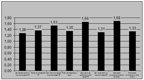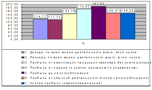 Наблюдается так же рост рентабельности. Рост рентабельности продукции составил 3,39%, а от обычных видов деятельности - 2,62%. Уменьшилась только рентабельность чистых активов: на 0,76%. Эффективность труда возросла на 4,2%, что в будущем положительно скажется на финансовом состоянии предприятия.