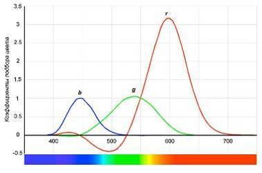 Примерно следующим образом распределяется чувствительность клеток сетчатки (рис.1.3):