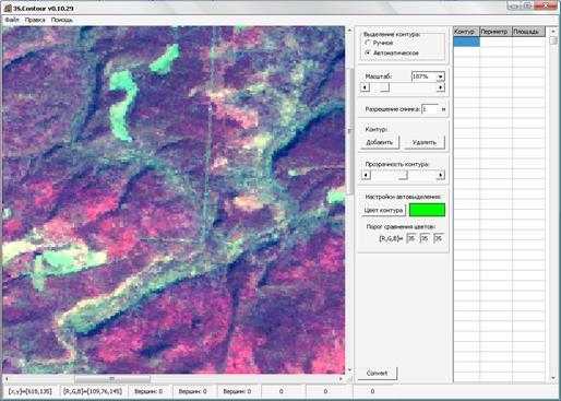 Основные области применения спутникового дистанционного зондирования - получение информации о состоянии окружающей среды и землепользовании, изучение растительных сообществ, оценка урожая сельскохозяйственных культур, оценка последствий стихийных бедствий. Средства дистанционного зондирования эффективны при изучении загрязнения почвы и водоемов, льдов на суше и на воде, и океанологии. Эти средства позволяют получать сведения о состоянии атмосферы, в том числе глобальном масштабе. Данные зондирования поступают в виде растровых изображений земли из космоса. Они и являются моим объектом исследования в данной работе. А предметом исследования - любые аномальные области (вырубки, гари…) на снимках. Обнаружение и обработка таких областей является важным процессом и занимает достаточно большое количество времени и системных ресурсов. В данной работе создано программное обеспечение в качестве одной из разновидностей геоинформационных систем, позволяющей проводить классификацию по цветам, оконтуривать классы и производить тематическую обработку для оптимизации процесса обработки космической информации на снимках при минимальной потере качества. Написанное программное обеспечение позволяет проводить эффективное оконтуривание областей, представлять границы в векторном формате для экспортирования в мировые геоинформационные системы. Результаты данной работы являются актуальными и востребованными в сфере работ наземных служб по контролю растительного покрова Земли.