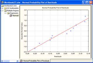 График распределения ошибок на нормальной вероятностной бумаге (Normal plot of residuals) приведен на рис. 7.
