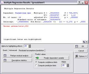 Инициировав кнопку Summary: Regretion results (Результаты регрессионного анализа), мы определим важнейшие характеристики и степень её адекватности (рис. 2).