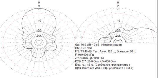 Диаграммы направленности имеют вид: