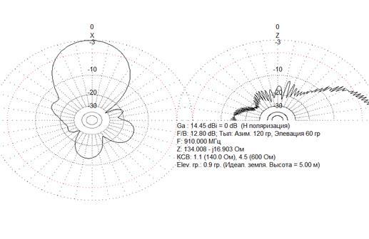 Рисунок 4.16 – ДН антенны, расположенной на высоте 5 метров над землёй