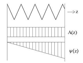 Поскольку в спирали существует бегущая волна тока (от конца спирали отражение слабое и им можно пренебречь при приближенном рассмотрении процессов и расчете), ток I1(z) определяется выражением: