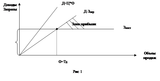 Графическая иллюстрация определения точки безубыточности приведена на рис.1.