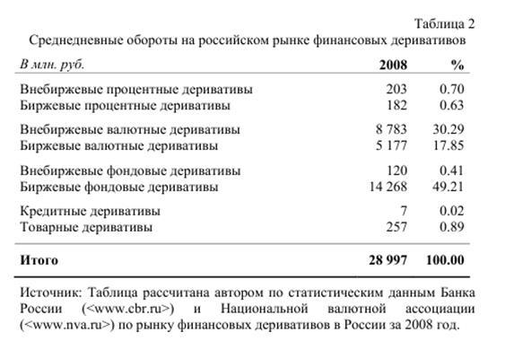 3. Исследование особенности функционирования российского рынка производных инструментов
