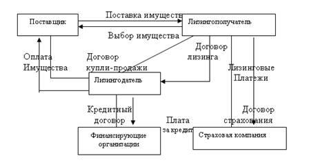 Рис.1 Схема лизинговой сделки и финансовых потоков