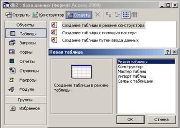 До створення нової таблиці можна приступити відразу після відкриття бази даних.