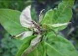 На мальве в июле была отмечена колония зелёных тлей, высасывающая сок из листьев и бутонов, что приводило к скручиванию и пожелтению листьев, искривлению побегов и отставанию их в росте; также сахаристые выделения тлей загрязняют листовую поверхность, что нарушает нормальную жизнедеятельность растений. В июне были найдены взрослые особи клопов-слепняков (рис.10), высасывающие сок из листьев, в результате чего листья сначала покрывались пятнами, которые по мере роста листьев превращались в мелкие, рваные отверстия с коричневыми краями.