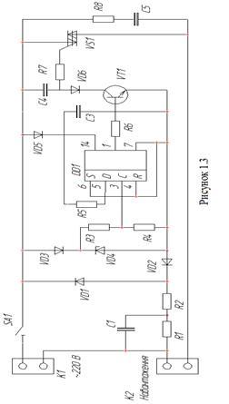У ній вузол ввімкнення силового симистора VS1 виконаний на одному D-тригері і узгоджуючому транзисторі VT1. Як бачимо, подана схема наближена до розроблюваної. Проте тут наявні свої недоліки: