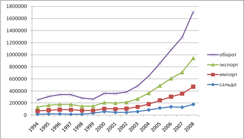 Как известно, российскому экспорту присуща сырьевая направленность. Россия очень богата природными ресурсами, и это, бесспорно, ее конкурентное преимущество перед другими странами. В тоже время, доля продукции машиностроения, особенно, конкурентоспособного, крайне невелика.