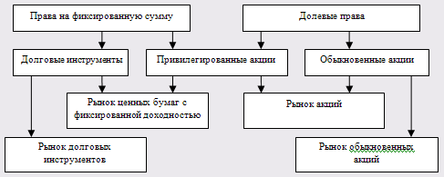 Рисунок 1. Классификация финансовых рынков по типам прав на активы.