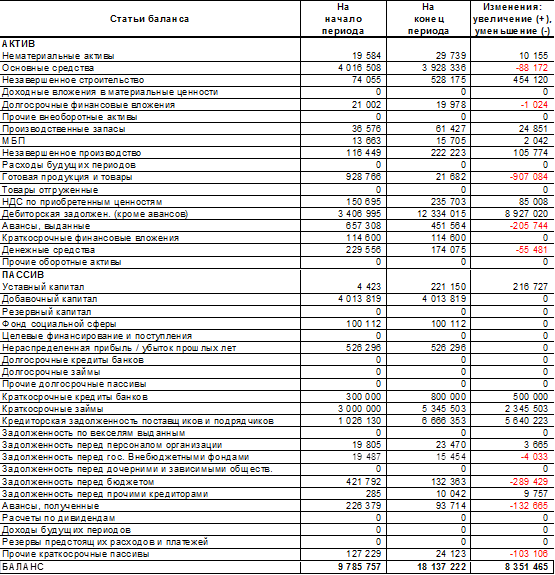 Таблица 3 - Изменение величины имущества предприятия и источников его образования за отчетный период, руб.