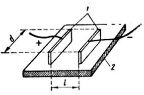 где - поверхностное сопротивление образца материала между параллельно поставленными электродами шириной отстоящими друг от друга на расстоянии (рисунок 12).