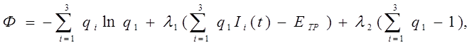 Задача ставится так: необходимо найти значения qj ,q2 ,q3, такие, которые обеспечивают Е (t) > Етр (6)