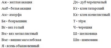 4. Перечень сокращенных обозначений названий древесных и кустарниковых пород: