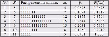 Все значения ( ) вариант целочисленные, , . Таблица для этих данных принимает следующий вид (таблица ):