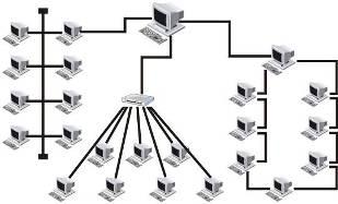Топология сети - характеризует физическое расположение компонентов сети (рабочих станций, серверов, кабелей). Каждая топология сети налагает ряд условий. Например, она может диктовать не только тип кабеля, но и способ его прокладки. Выбор топологии электрических связей существенно влияет на многие характеристики сети. Например, наличие резервных связей повышает надежность сети и делает возможным балансирование загрузки отдельных каналов. Простота присоединения новых узлов, свойственная некоторым топологиям, делает сеть легко расширяемой. Экономические соображения часто приводят к выбору топологий, для которых характерна минимальная суммарная длина линий связи.