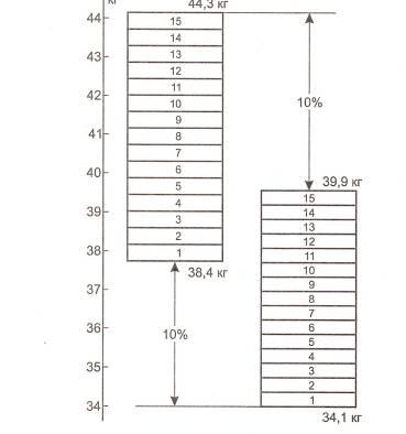 При малом весе его переоценка происходила на обеих руках, но чаще на правой. Зато на левой руке было больше точных оценок и недооценок. При среднем весе количество переоценок на правой руке было несколько большим, чем недооценок, а на левой руке уже резко перевешивали случаи, когда вес недооценивался. При весе в 300 г на обеих руках преобладали случаи недооценки веса, причем на левой руке их было больше.