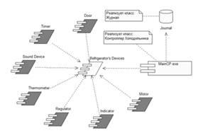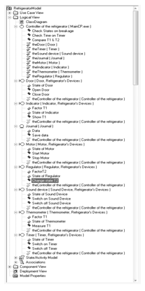 Требуется разработать средствами Rational Rose модель программного обеспечения встроенного процессора холодильника. В холодильной камере имеется регулятор температуры, мотор, термометр, индикатор, таймер, датчик открытия двери камеры и устройство для подачи звуковых сигналов.